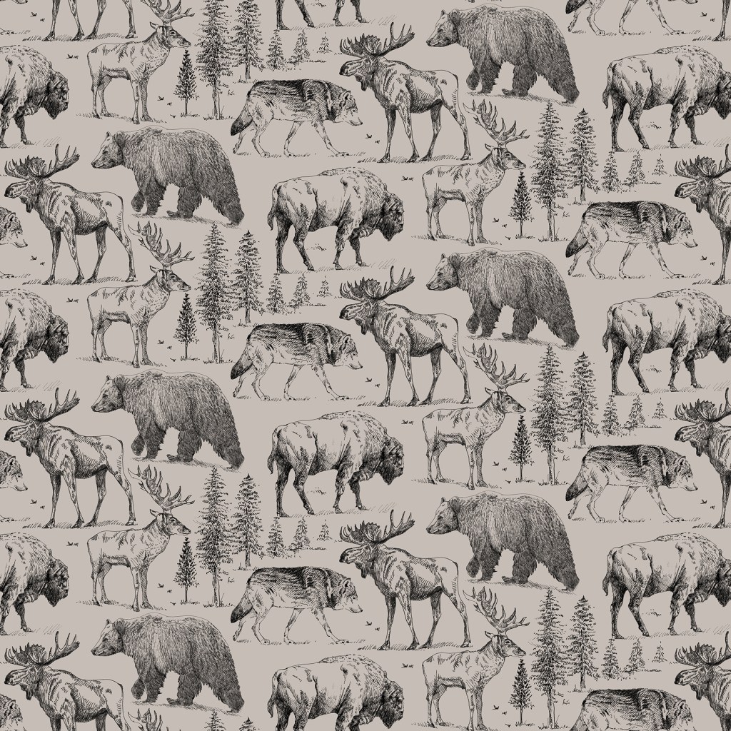 Wild in the Northwoods as the name suggests, is inspired by the North American wildlife. Hand drawn sketches scanned to a high resolution and created in stunning layouts offer endless possibilities to be used on a wide range of products. Collection offers three different colour options Grey, Taupe and Ivory.